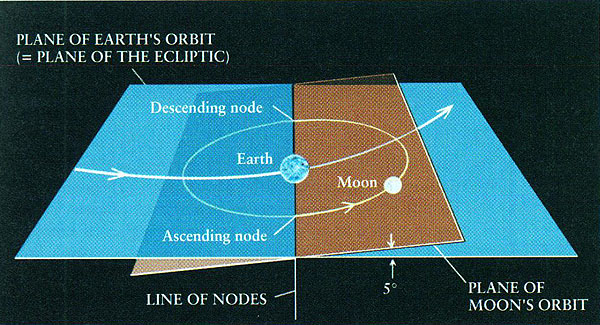 Note that eclipses don't happen every month because the moon's orbit is tilted 5 degrees out of the earth-sun plane. So we really only get eclipse seasons twice a year (when the sun is on the "line of nodes" in the diagram below).