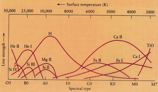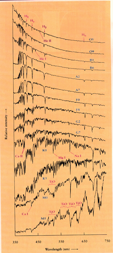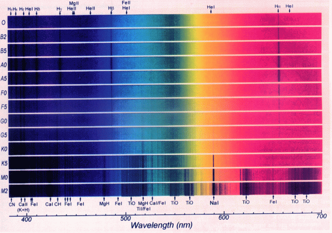 The spectral types, from hot stars to cool stars are: O B A F G K